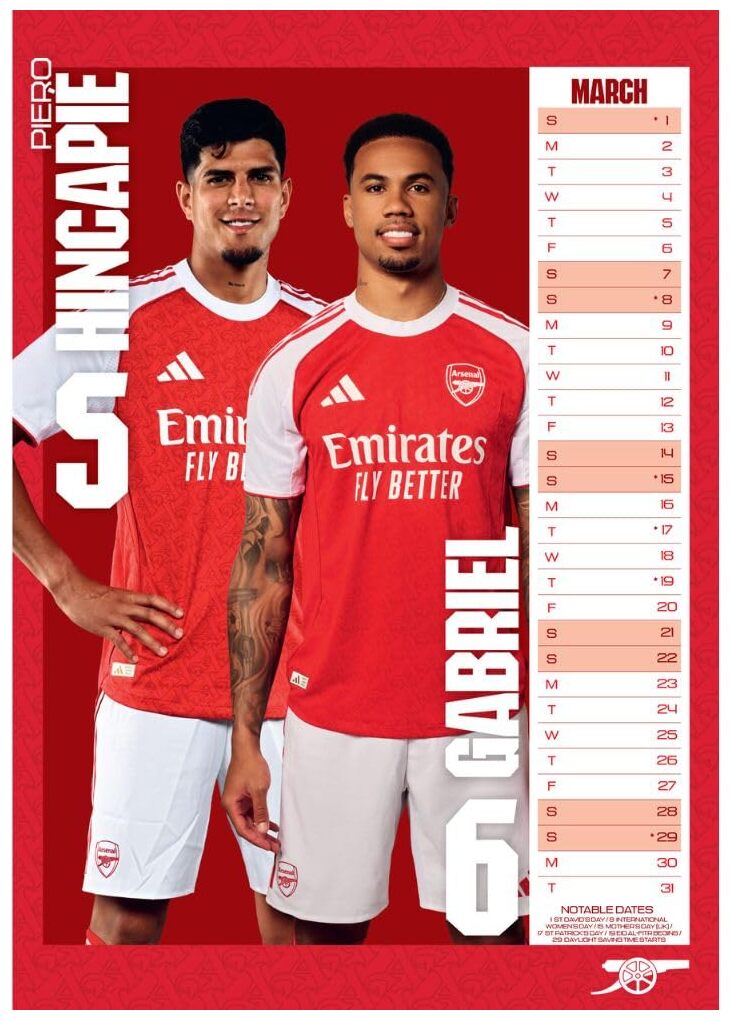 Arsenal A3 Calendar 2026 TM-07075