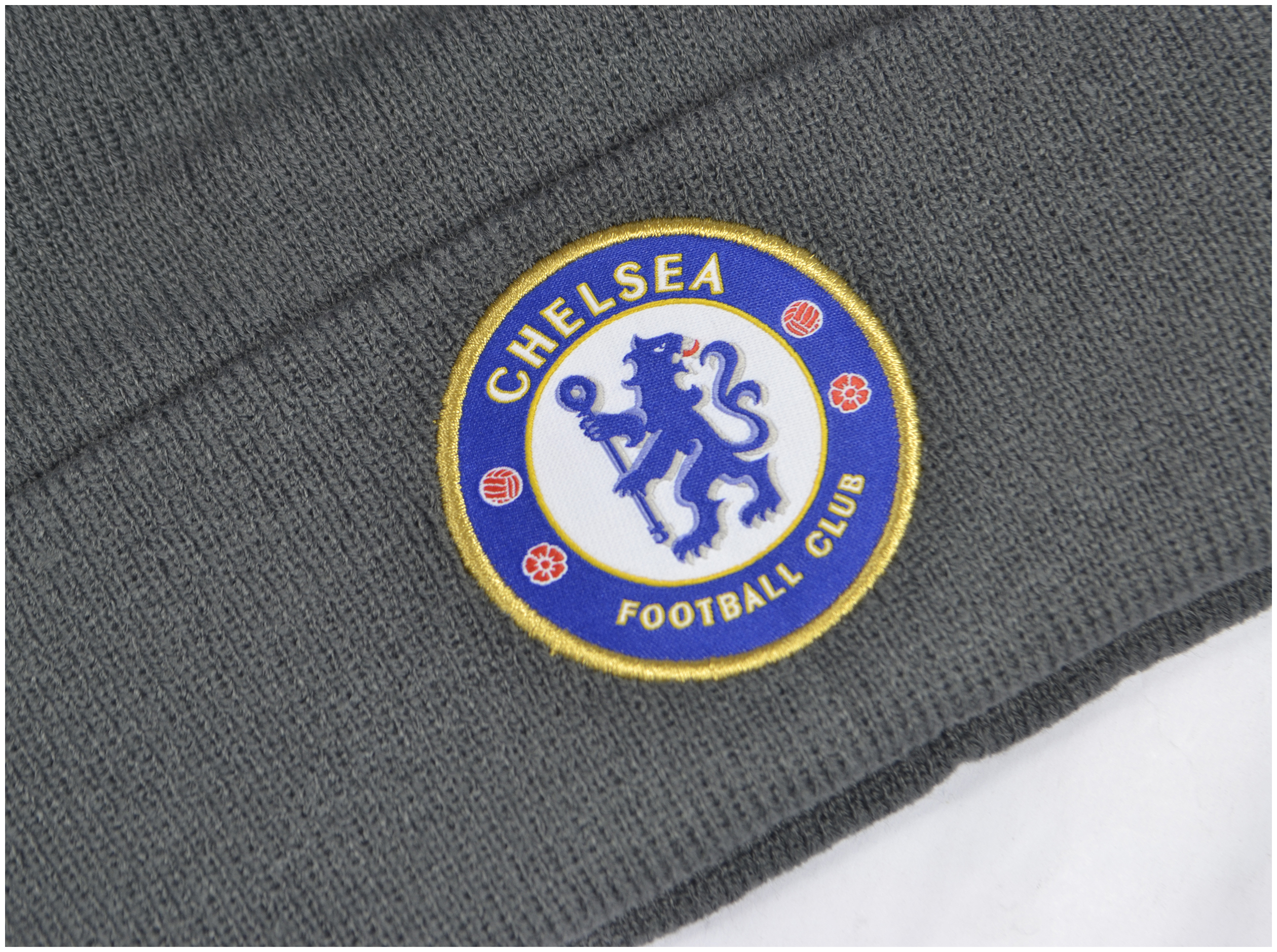 Chelsea Stickad Mörkgrå Mössa med Vapensköld och Skogsgrått