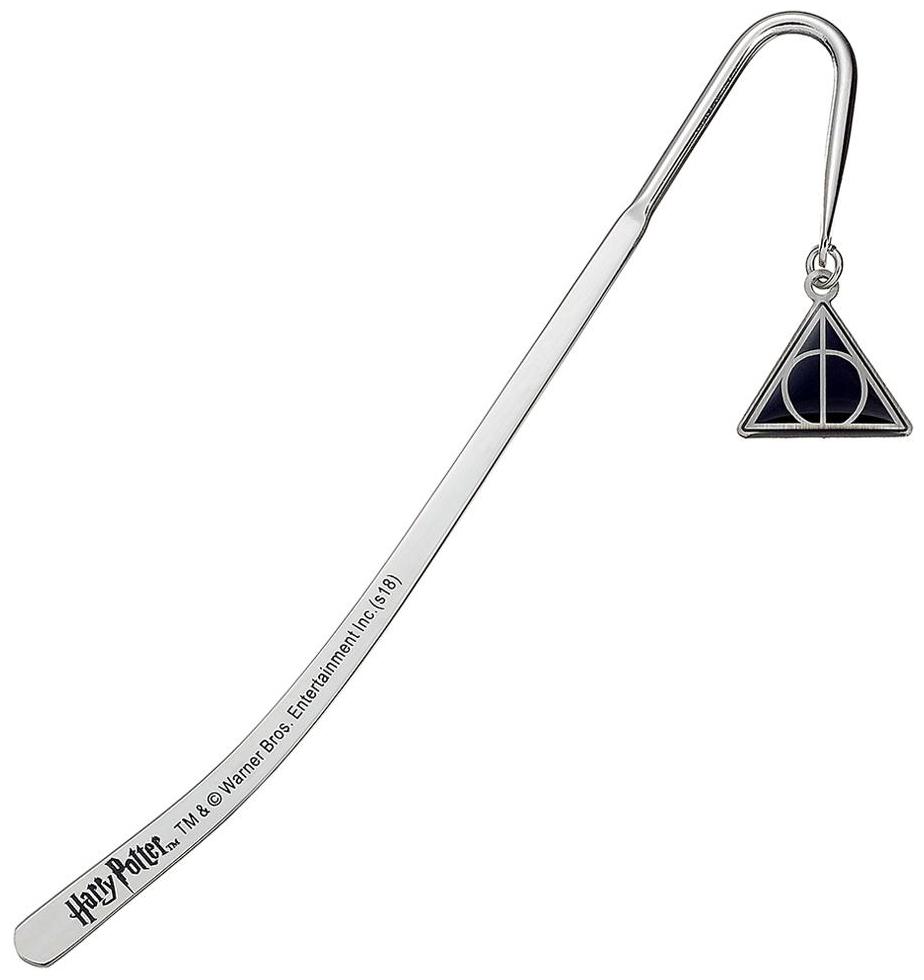 För alla Harry Potter-fans där ute är detta bokmärke ett måste! Det är en snygg silverpläterad bokmärke med en hängande charm som visar den ikoniska symbolen för Deathly Hallows.