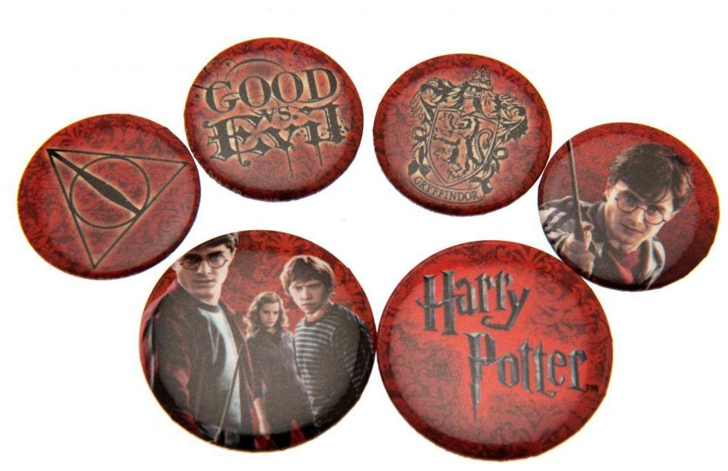 Gör din outfit magisk med dessa Harry Potter Emblem Knappar!