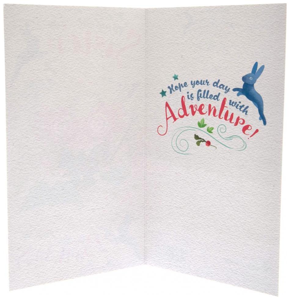 Inuti kortet står det "Hoppas din dag är fylld av äventyr!" och det medföljer en vanlig vit kuvert.