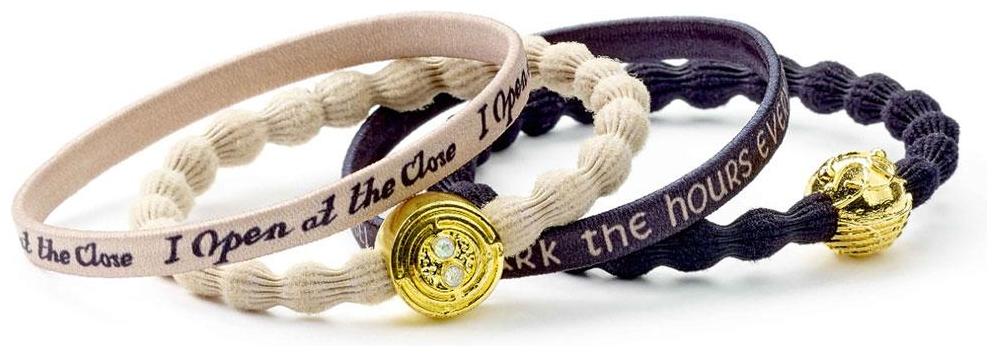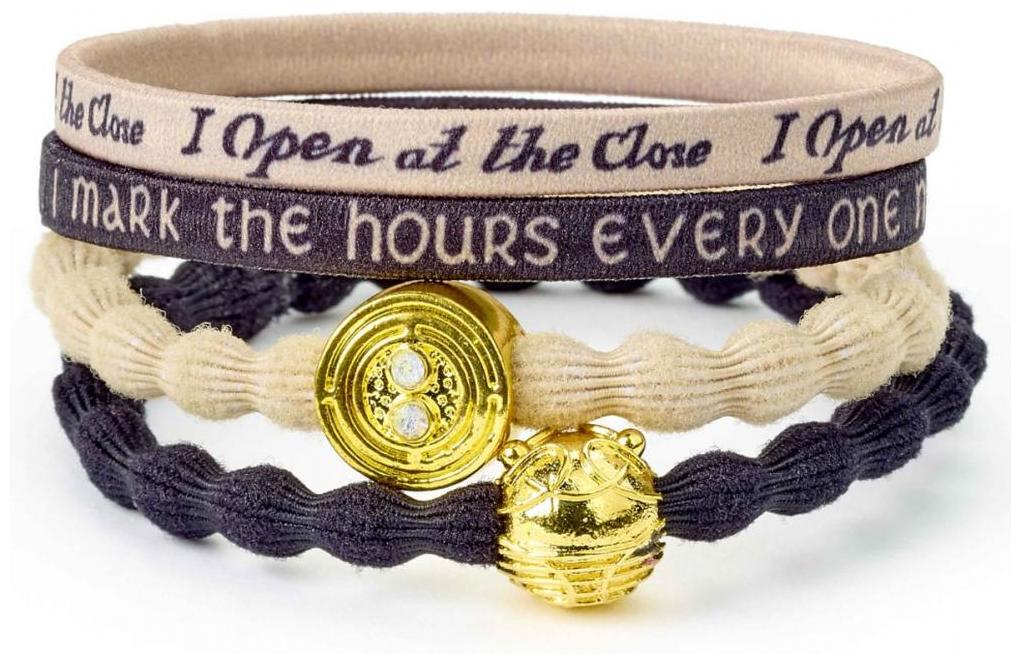 Det finns också ett svart band med en Golden Snitch-charm, ett svart band med frasen "I mark the hours every one nor have I yet outrun the sun" och ett krämigt band med en upprepning av frasen "I open at the close".