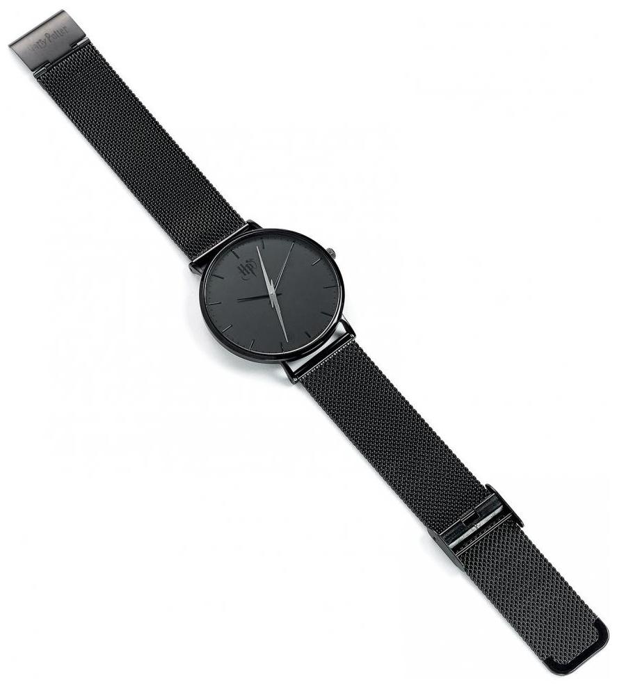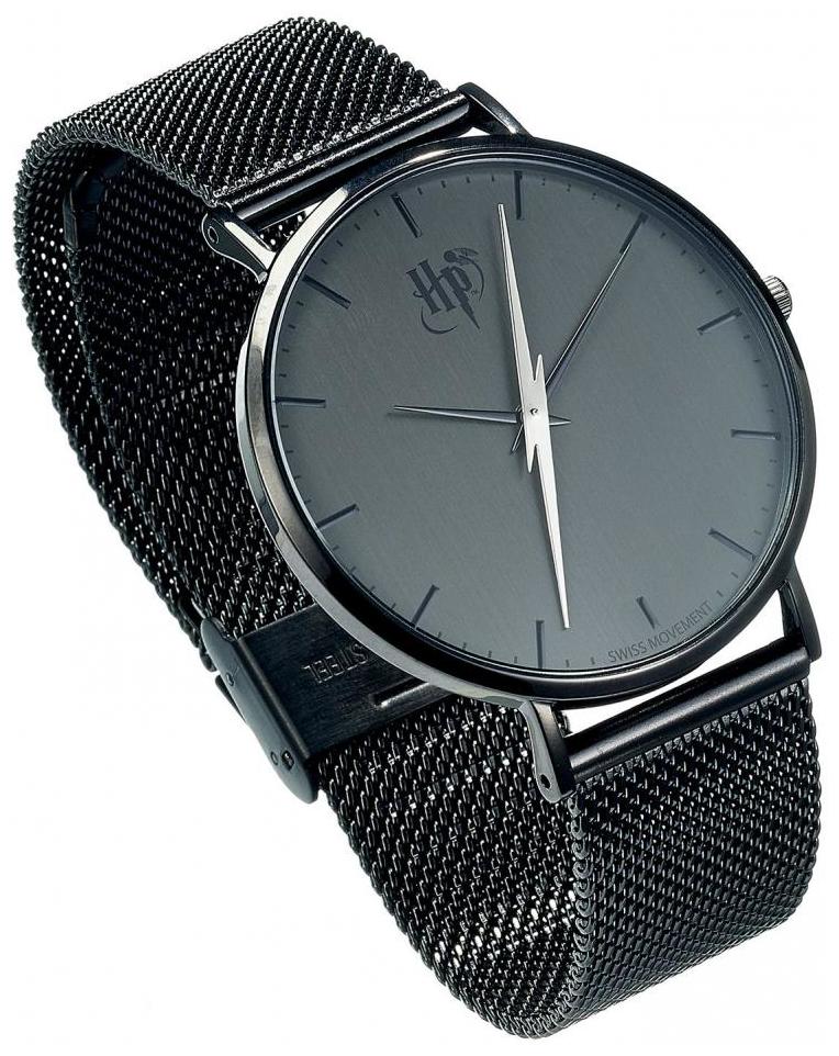 Klockan har en svart urtavla med en Harry Potter logotyp och en sekundvisare i form av en blixt.