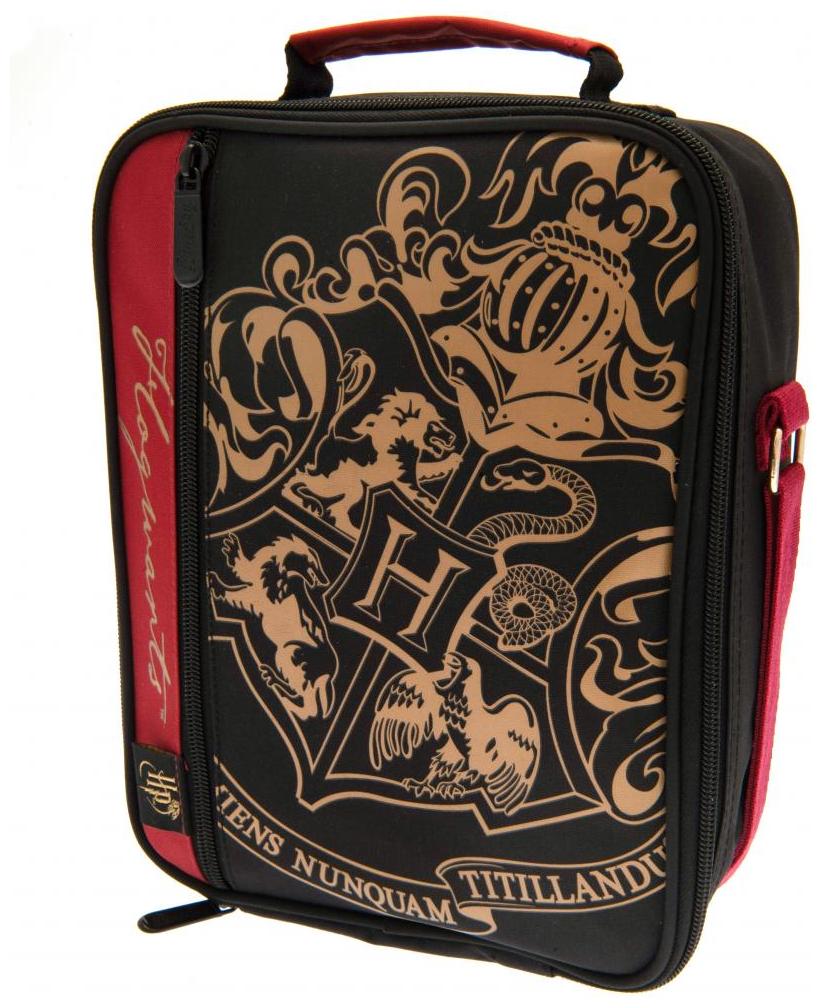 Denna svarta lunchväska med det berömda Hogwarts-vapnet i guldtryck är perfekt för alla Harry Potter-fans.