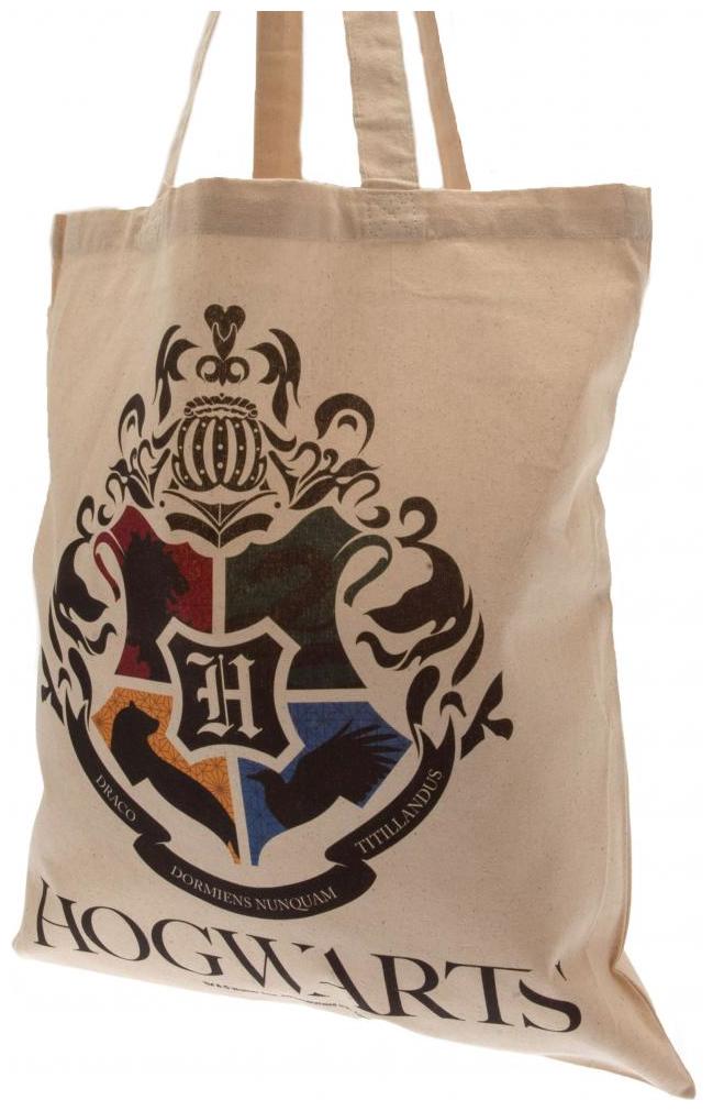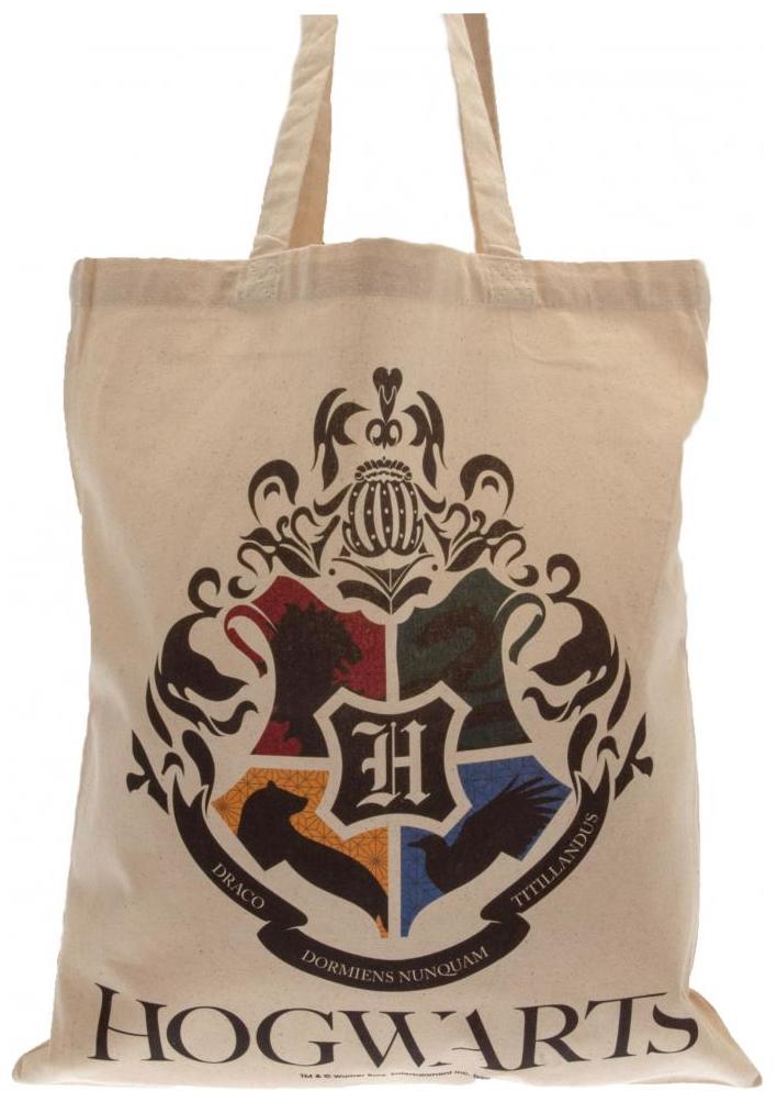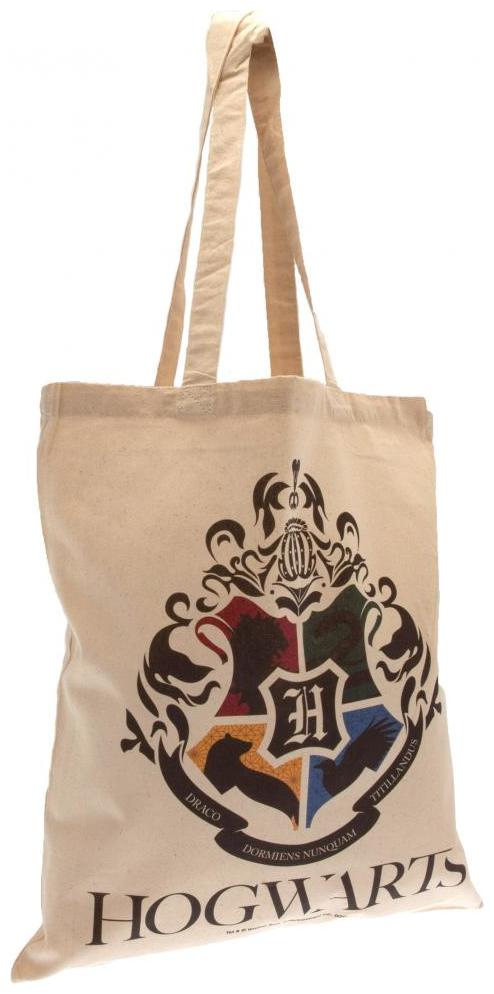 Denna krämfärgade canvasväska pryder dina dagar med ett livfullt tryck av Hogwarts-emblemet. Den är perfekt för böcker, dator och vardagsprylar.