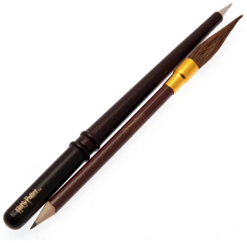 Setet levereras med två iögonfallande verktyg: en brun penna formad som en trollstav och en brun blyertspenna formad som en kvast. Pennan är cirka 19 cm lång och blyertspennan cirka 17 cm lång.