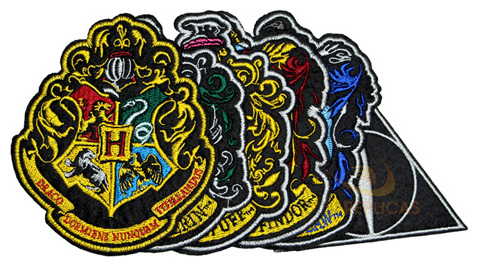 Du får sex stycken märken i olika storlekar, inklusive Gryffindor, Slytherin, Ravenclaw, Hufflepuff, Hogwarts och Deathly Hallows.