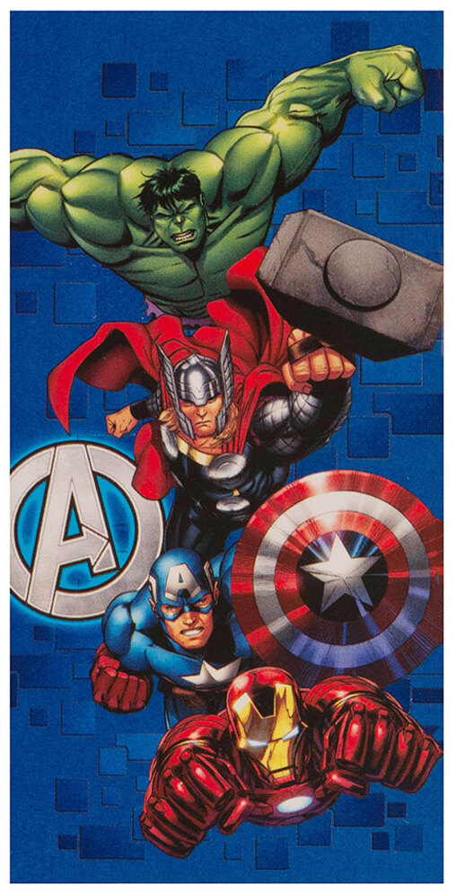 Denna stora och mjuka handduk är perfekt för stranden med sitt livliga tryck av Iron-Man, Thor, The Hulk och Captain America. Tillverkad av 100% bomull och är officiellt licensierad. Handduken är ca 140cm x 70cm och har en mjuk velourkänsla.