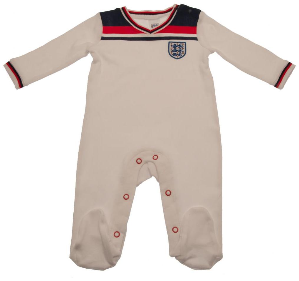 Med Englands traditionella vita hemmafärger och en design inspirerad av 1982 års VM-kit, kommer din bebis att se ut som en riktig supporter.