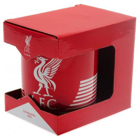 Muggen har en röd och vit linjär design med en stor Liverpool klubb emblem på framsidan.