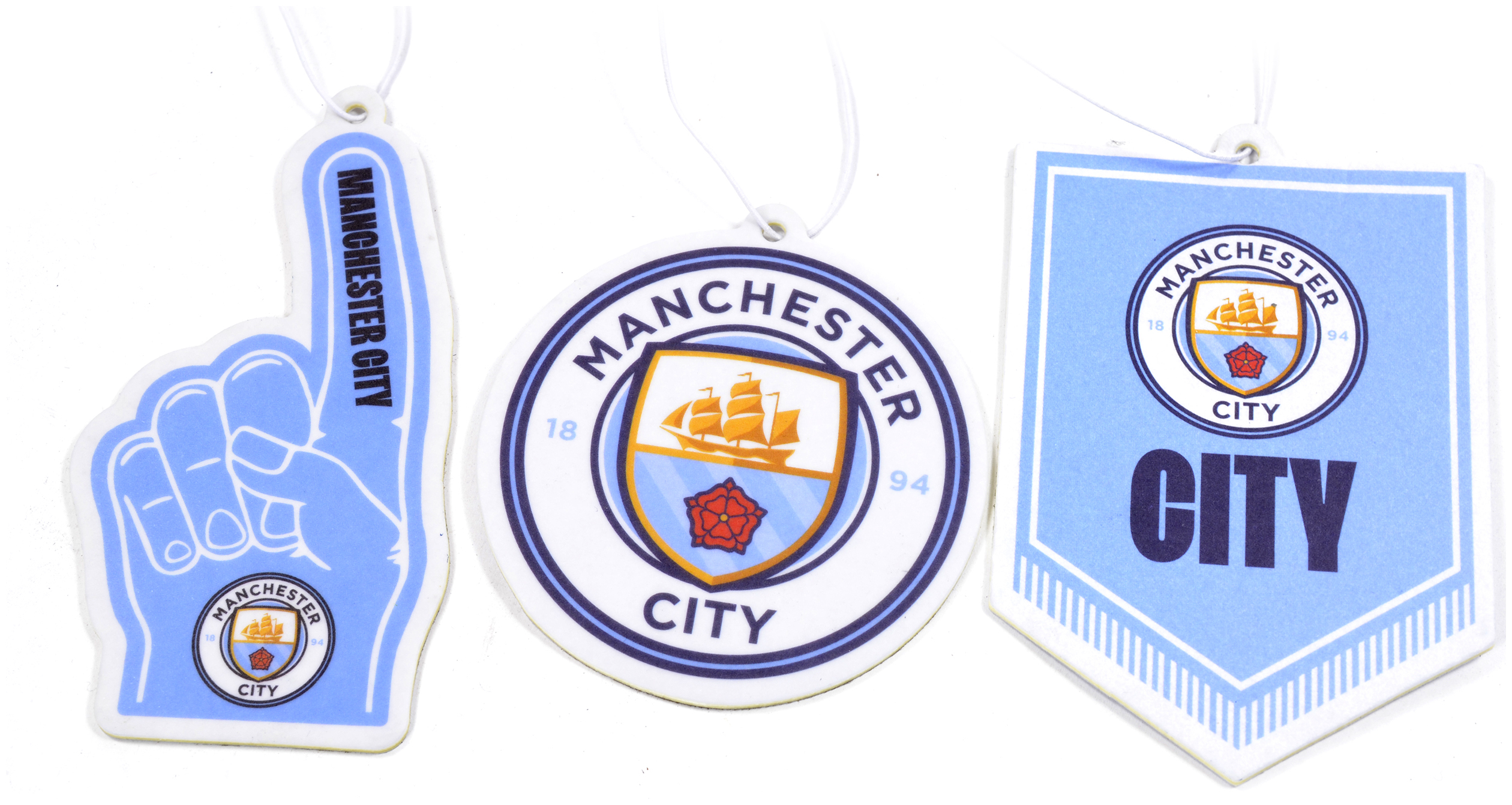 Ge ditt hem en fräsch och spännande atmosfär med Manchester City Bildoft Fan 3-pack! Detta officiellt licensierade fan merch-pack innehåller tre unika luftfräschare: en med den ikoniska Manchester City-vapnet, en med en pennant tröja design och en handformad luftfräschare. Perfekt för den hängivna Manchester City-fansen som vill förgylla sin vardag med dofter som representerar deras favoritlag. Perfekt för att sätta lite extra fotbollsinspiration i vardagen!