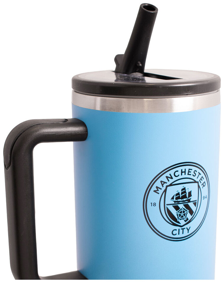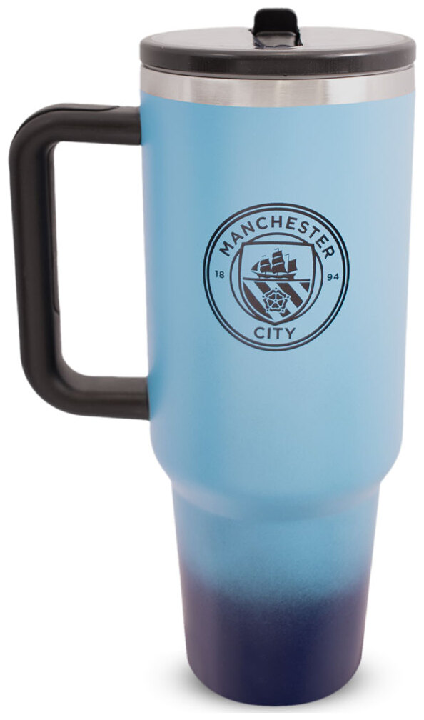 Presentera din kärlek till Manchester City med denna eleganta termosflaska i en vacker himmelblå färg. Med en kapacitet på 1,2 liter (40oz) är denna termiska tumbler idealisk för fans i alla åldrar och perfekt för både kalla och varma drycker.