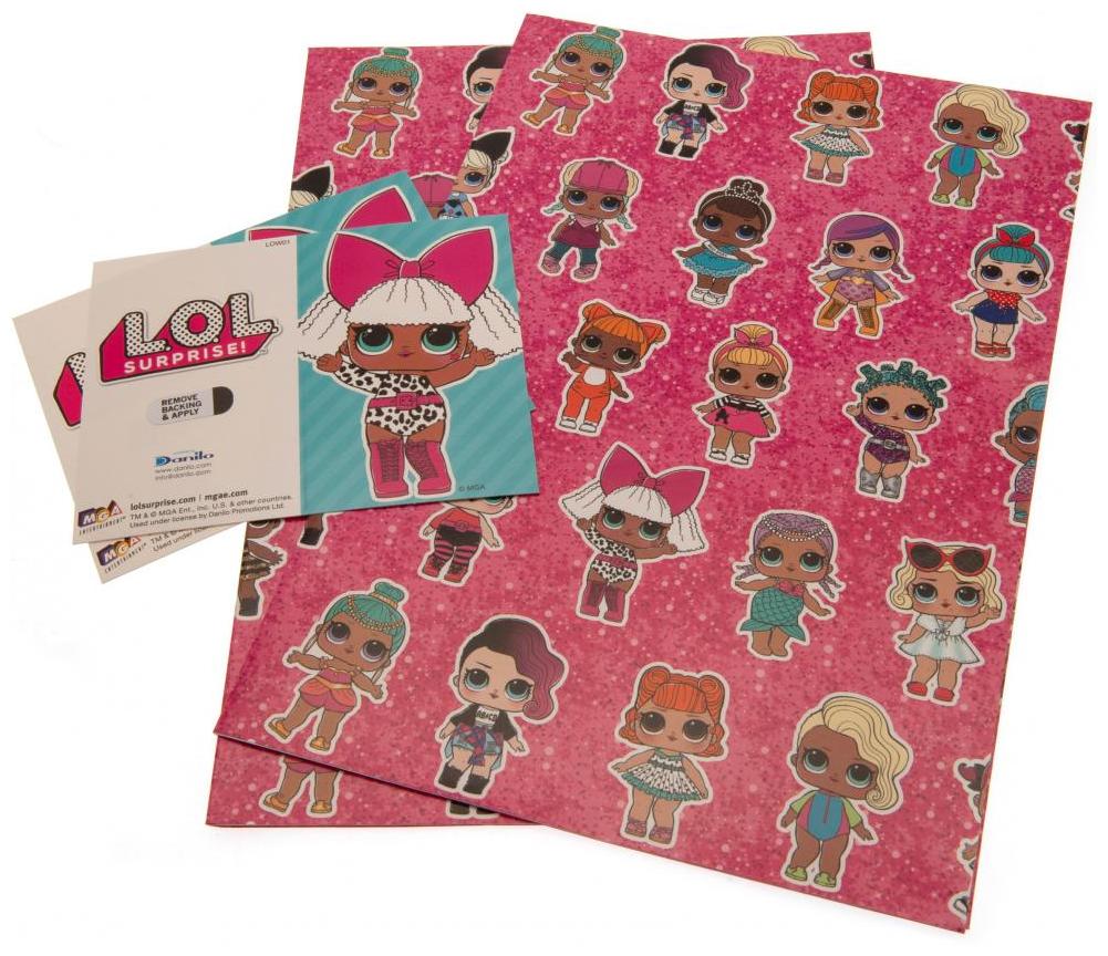 Ge dina presenter en extra touch av färg och glädje med LOL Surprise Presentpapper! Detta officiellt licensierade presentpapper kommer med två ark av livfulla färger och flera karaktärer på en rosa bakgrund.
