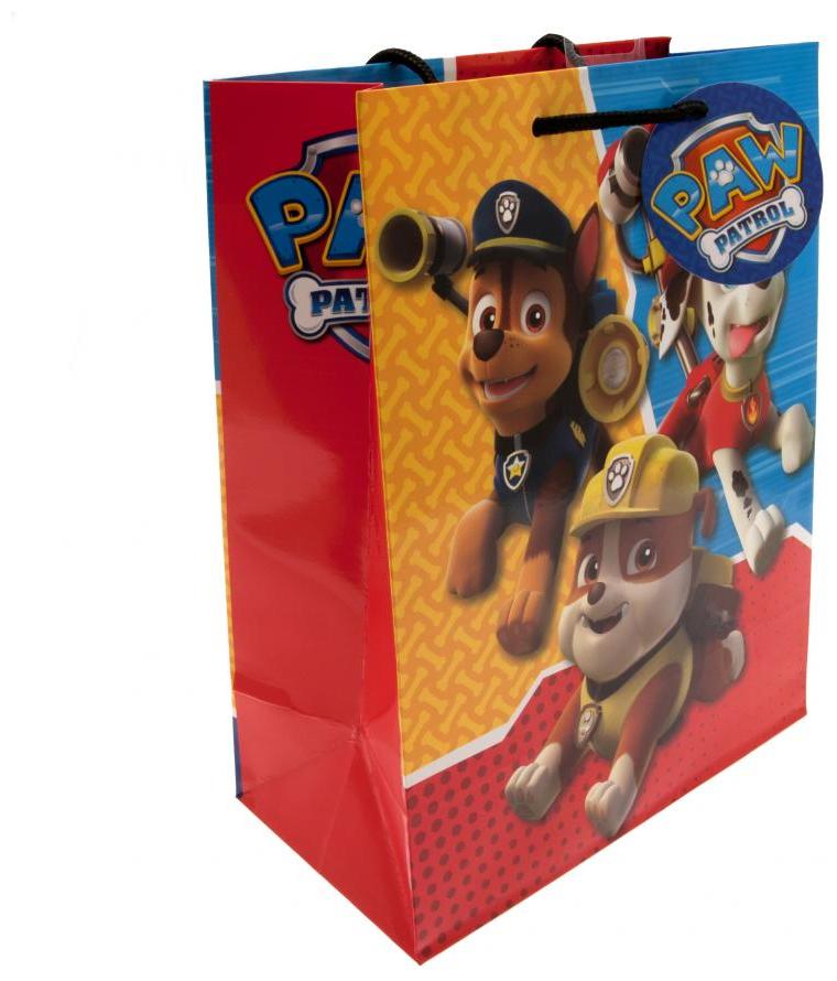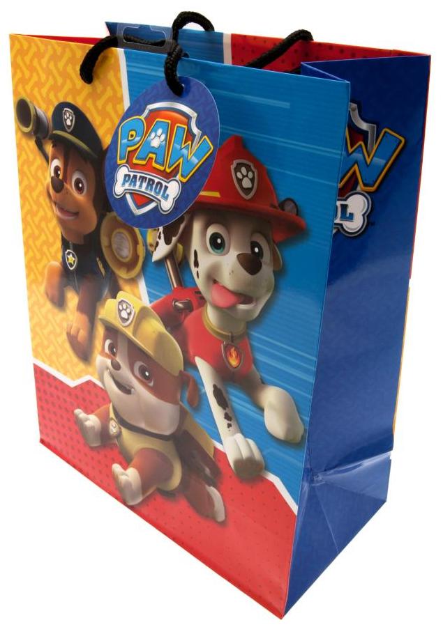 En färgglad Paw Patrol presentpåse i medelstorlek, perfekt för födelsedags- eller kalasgåvor.