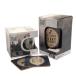 Detta fantastiska set innehåller två olika muggar med unika Peaky Blinders-designer, en stor glas med tryckt Peaky Blinders-logotyp och två korkbaserade underlägg med högkvalitativ glansig tryck.